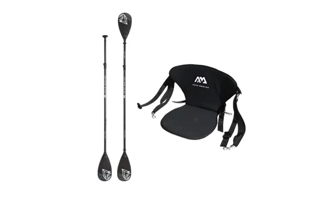 Transformer votre planche de SUP en kayak avec cet ensemble d’accessoires. Le siège se fixe sur n’importe planche qui possède les points d’ancrage (anneaux en D). Avec la pagaie Aqua Marina Dual-Tech, vous avez seulement besoin d’apporter une pagaie. Que ce soit pour faire du SUP ou du kayak la pagaie fait les deux!
