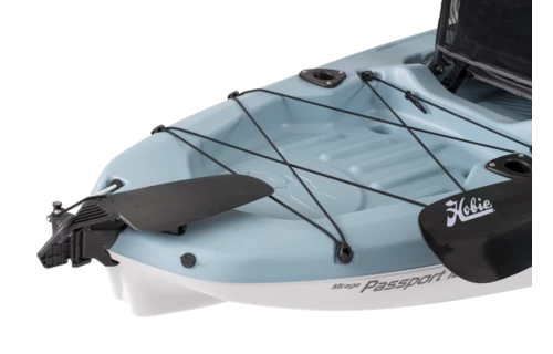 Le Passport vous emmène partout où vous voulez aller avec facilité et une compétence de classe mondiale. Chaque caractéristique est conçue pour vous procurer du divertissement. Naviguez en pleine mer ou pêchez dans les plaines. Nous avons fait en sorte que vous puissiez faire les deux grâce au tube vertical pour accessoires et aux porte-cannes moulés. Des rails de montage doubles permettent de garder vos accessoires à portée de main, tandis que le couvercle Twist-n-Seal de 8 pouces offre un rangement supplémentaire. Le système de direction facile à utiliser et la version simplifiée de notre gouvernail Twist-and-stow vous permettent de naviguer du bout des orteils Une pagaie est incluse pour les moments où vous voulez faire travailler vos bras.