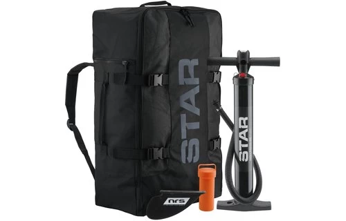 Comprend un siège, un sac de transport, une pompe, un aileron All-Water et un kit de réparation.