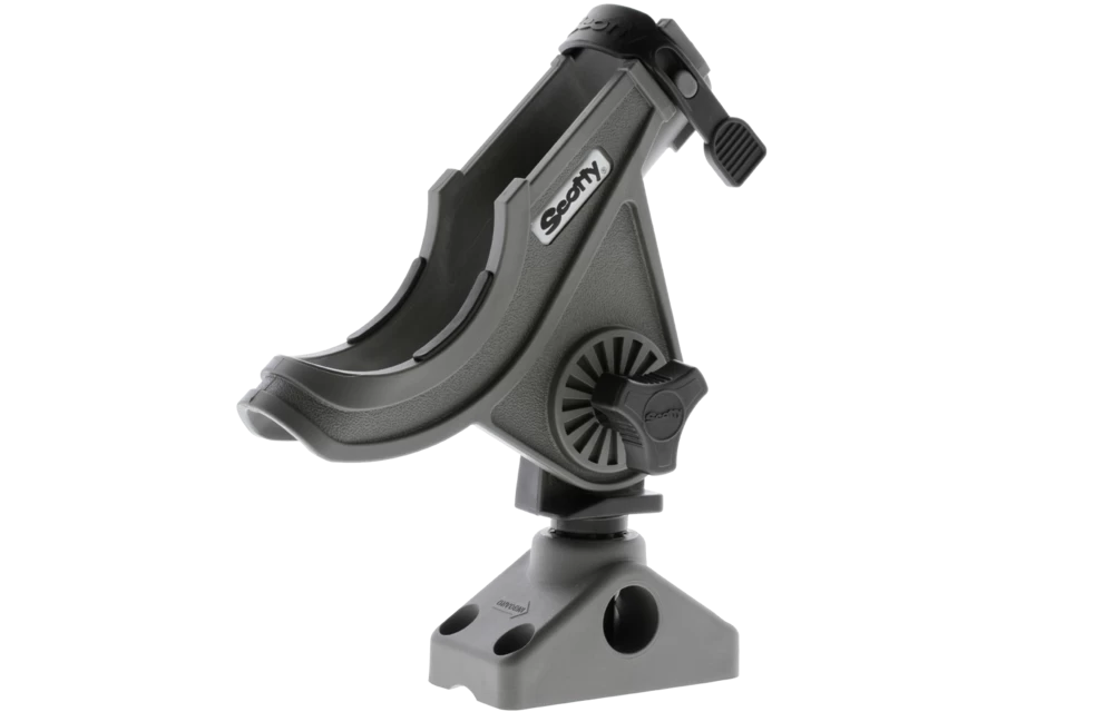 - Tous les porte-cannes Scotty à montage sur poteau sont entièrement réglables de haut en bas et avec une rotation horizontale de 360 degrés