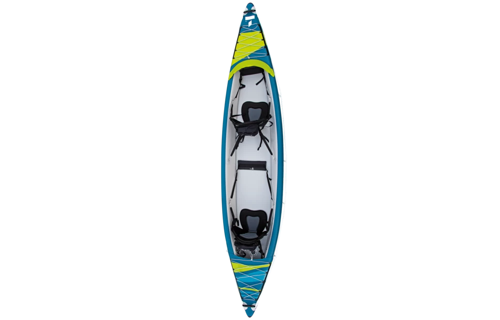 Kayak gonflable haut de gamme avec un niveau de glisse supérieur, une bonne rigidité, beaucoup d’espace à l’intérieur du cockpit pour les sorties et explorations sur tous types d’eaux, plates et agitées.